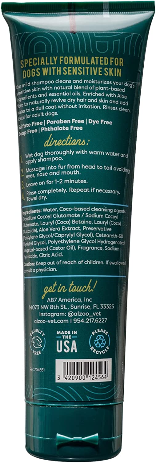 Alzoo's Hypoallergenic Shampoo for Dogs is specially formulated for dogs with sensitive skin. Their mild shampoo cleans and moisturizes your dog’s sensitive skin with a natural blend of plant-based ingredients and essential oils. The Hypoallergenic Shampoo is enriched with Aloe Vera to naturally revive dry hair and skin and add luster to a dull coat without irritation. Rinses clean. Ideal for adult dogs.