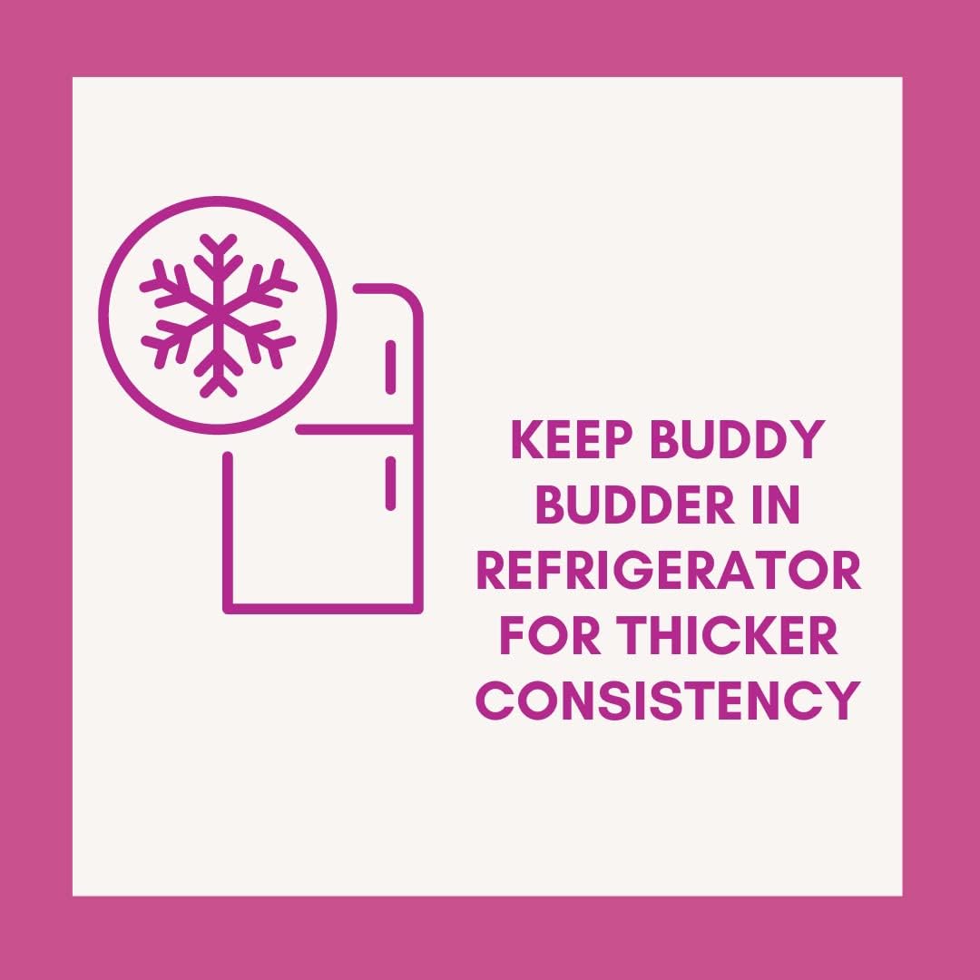 - Their peanut butter is all natural free of harmful ingredients and stabilizers. Refrigerating your buddy budder will allow it to thicken so its easier to stuff inside of dog enrichment toys and to use as a pill pocket.
