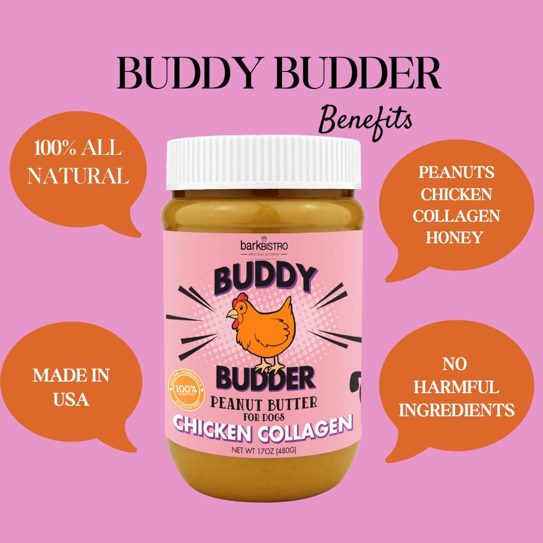 Bark Bistro Chicken Collagen BUDDY BUDDER - 100% Natural Dog Peanut Butter, Made in USA 17oz jar