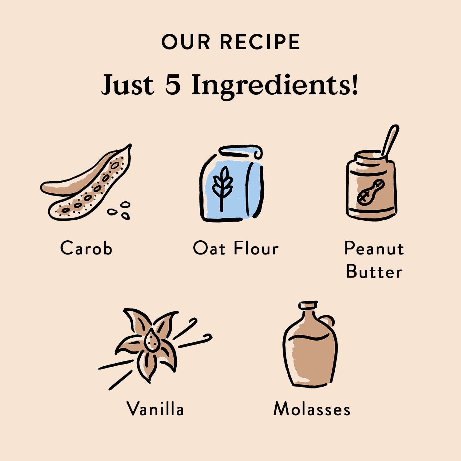 - Ingredients : Oat Flour, Peanut Butter, Carob, Vanilla, Molasses