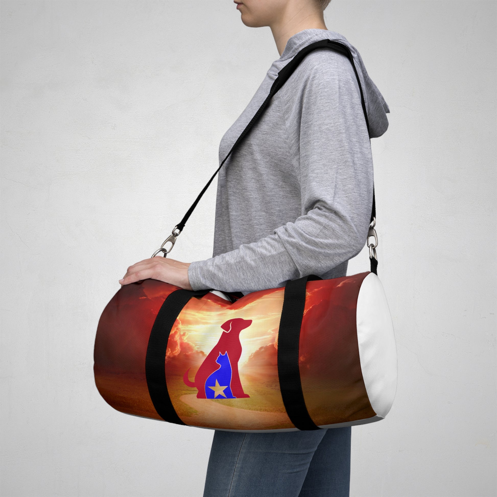 Lightweight and durable, our custom-printed duffel bags are a great way to express yourself! Perfect for the gym, a day-trip, or for any other mobile storage need! Easy to carry with you in your hands or around your shoulders, these duffel bags are ready to go anywhere!