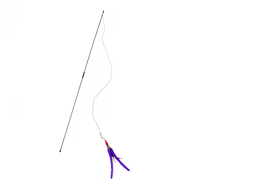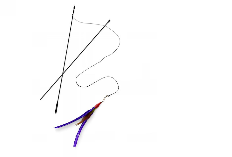 This is the Easy Store 2 part pole version of the Da Bird toy. You can pull it apart and it takes up half the space. Handcrafted in the USA with top quality materials, Da Bird Feather Teaser simulates the motion of a bird at your control. Set on a swivel, its feathers look, sound and feel like real bird wings and will drive your cat wild. Encourages instinctual behaviors and exercise to keep your cat healthy and alert. Fiberglass wand comes apart in two pieces for compact storage. Toy includes 36" 2 part wand, 32" nylon string and one feather dangler.