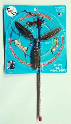 DA Purr-Peller has been carefully handcrafted in the USA by the Go Cat Feather Toy Team. Bring out the tiger in your cat. Cats have a natural hunting instinct and this Go Cat Da Purr-Peller engages that instinct in a fun and healthy way while giving them exercise. This toy features a propeller of feathers that spin when swung through the air that will capture your cat's attention and encourage them to hunt and stalk to their heart's content. DA PURR-PELLER is interchangeable with other GoCat poles for those of you who currently use the best cat toys on the market. Public Alert: Hide cat toys when not in use and supervise when in use. Inspect periodically for damage. Do not permit your pet to play with a toy that is broken or damaged. Please discard when worn. No pet toy is indestructible.