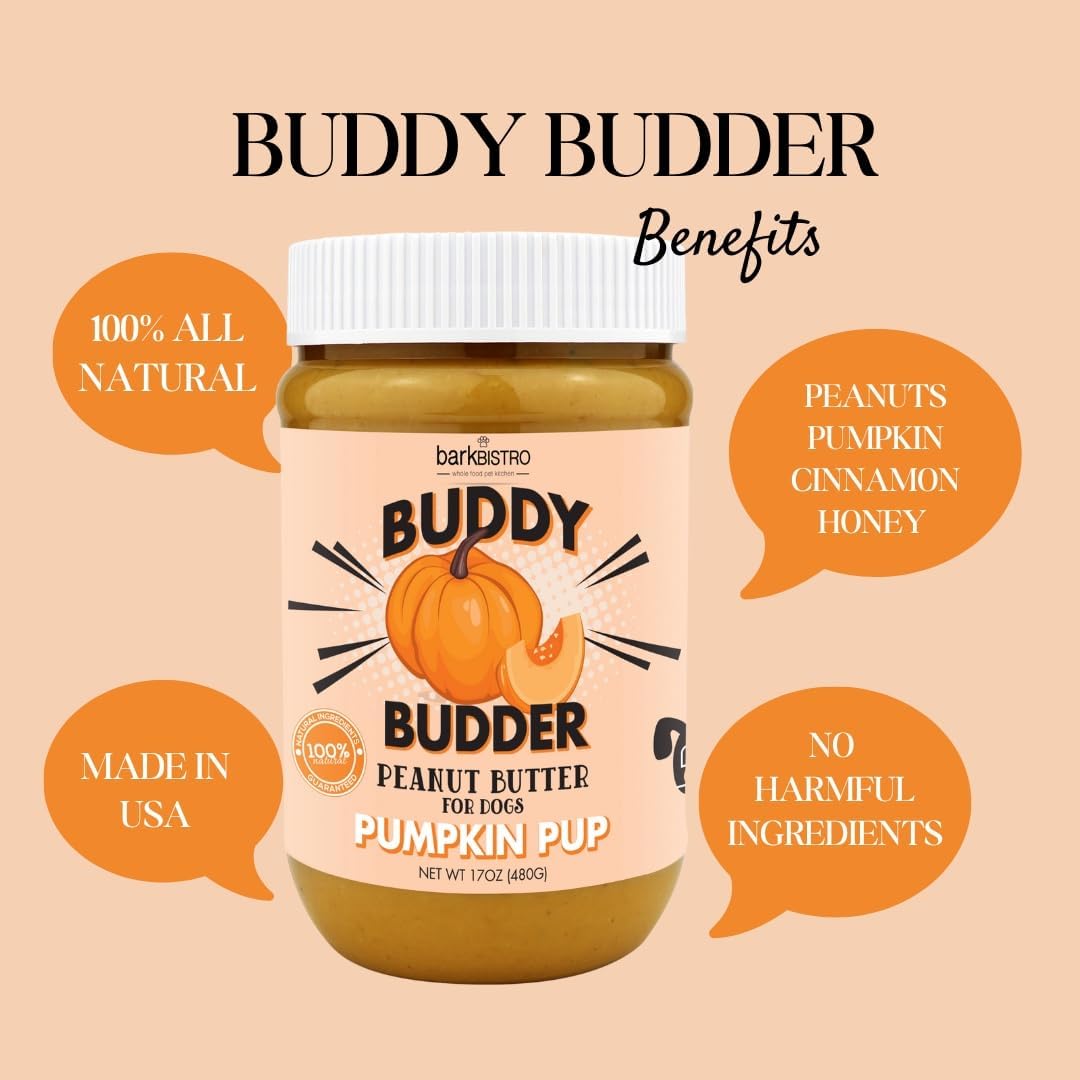 Bark Bistro Pumpkin Pup BUDDY BUDDER - 100% Natural Dog Peanut Butter, Made in USA 17oz jar
